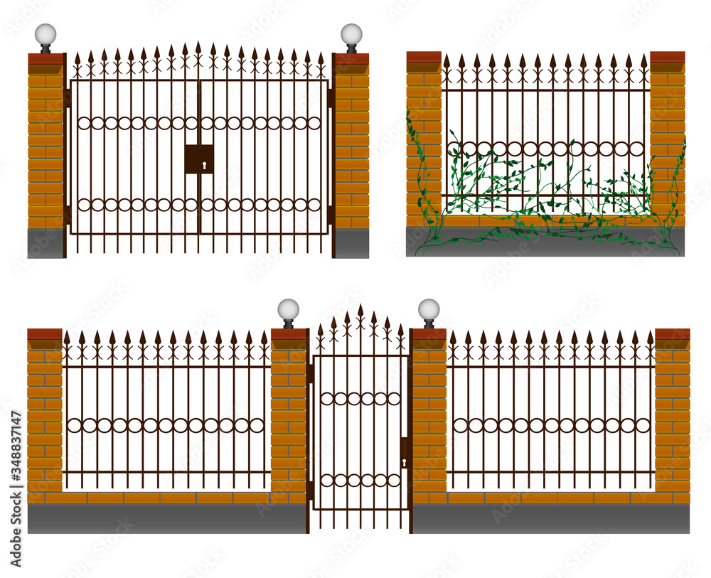 Fencing Entrance With An Iron Fence Wrought Iron Gates And A Gate Design For The Yard And Cottage Private Houses Stock Vector Adobe Stock